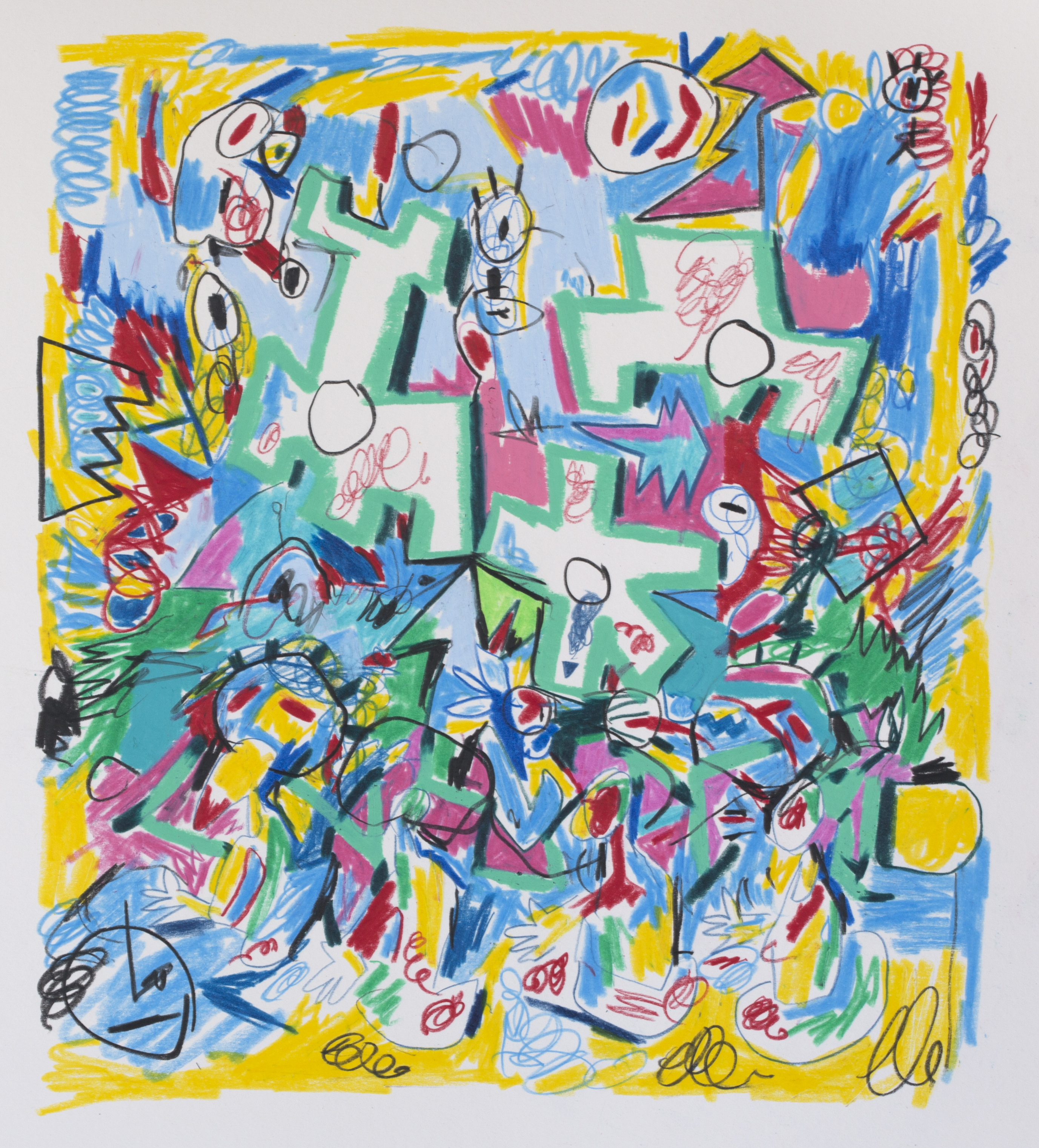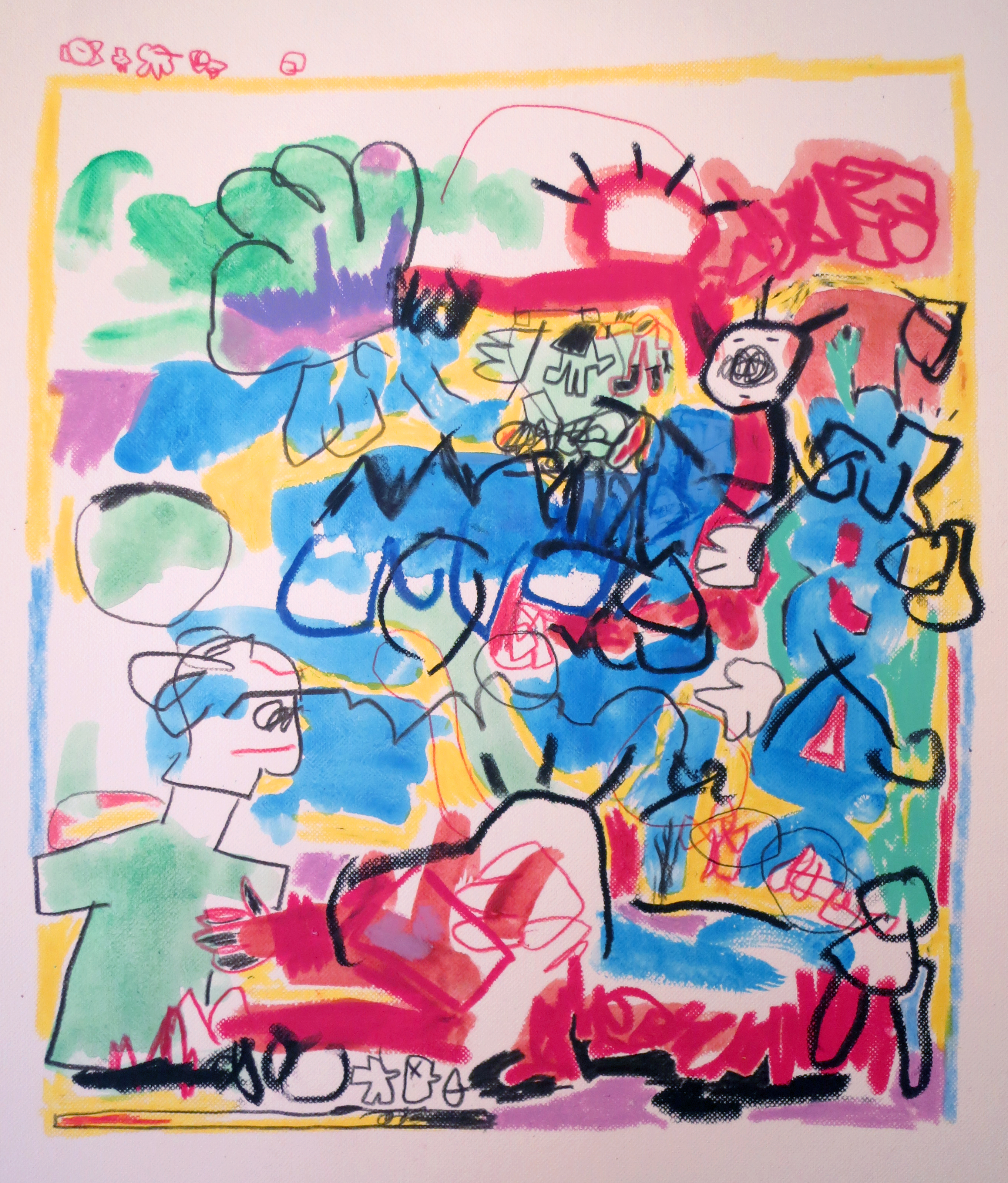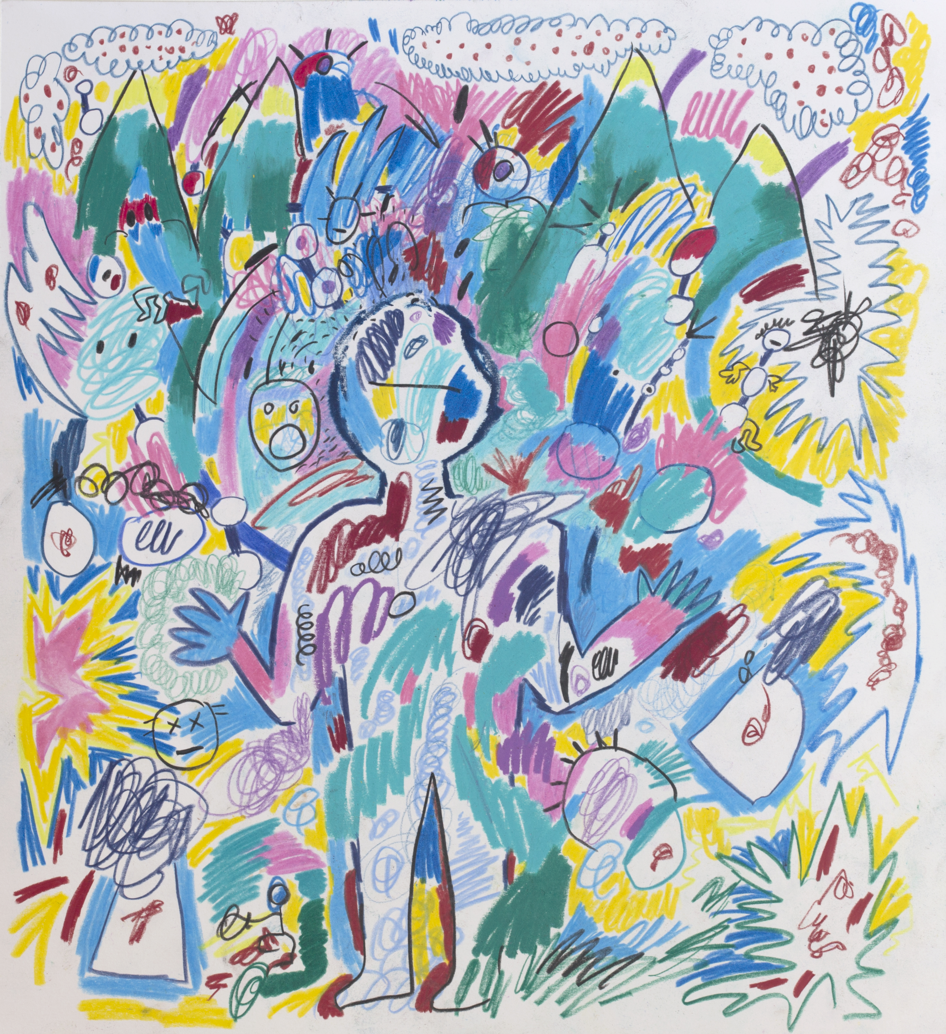 The first 8 are colour pencils and wax pastels on paper. The rest are markers or fineliners on paper.
