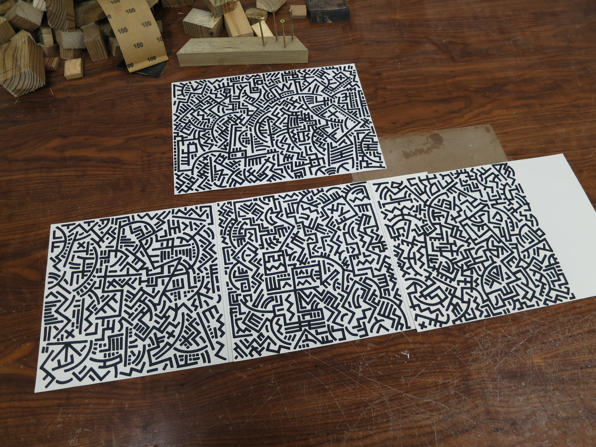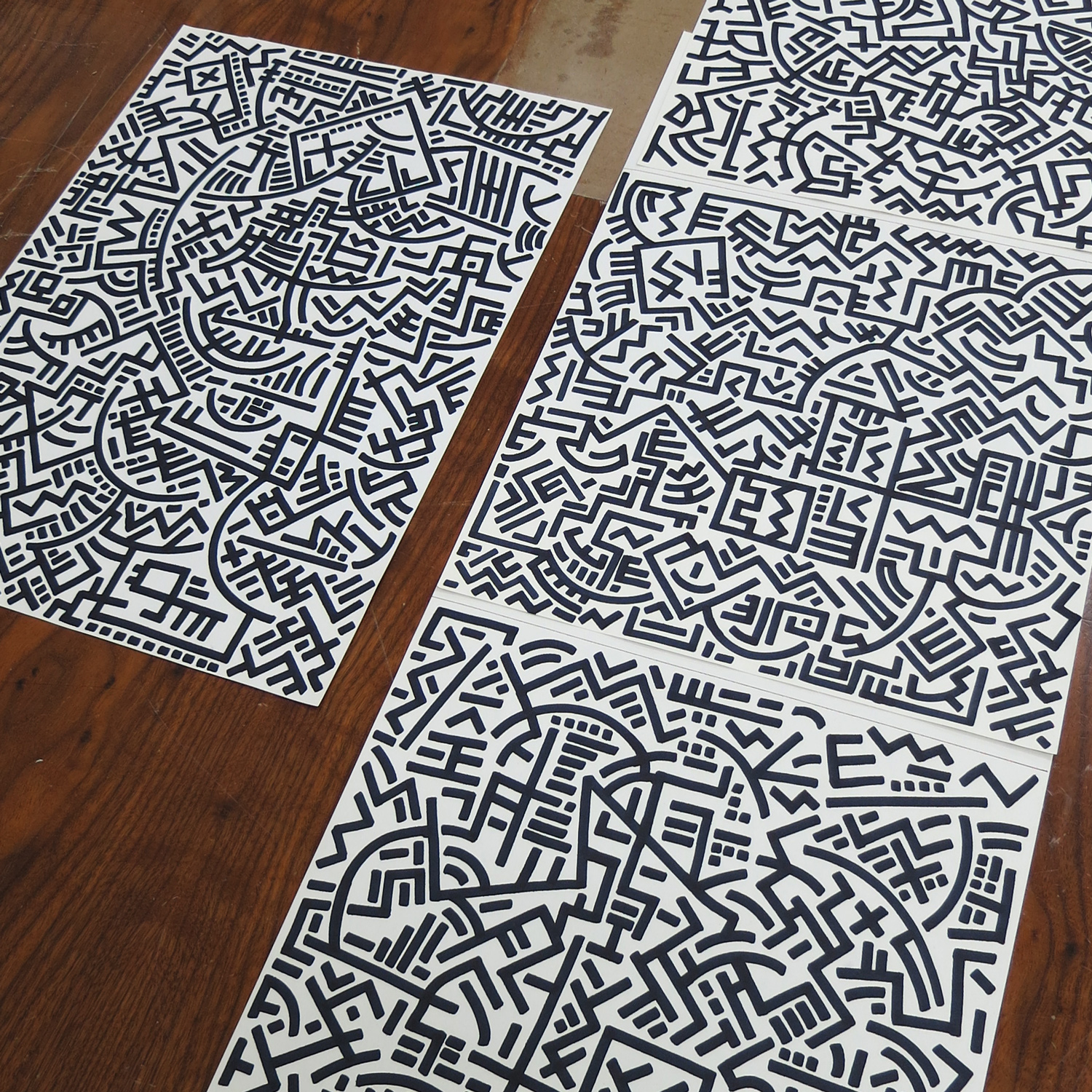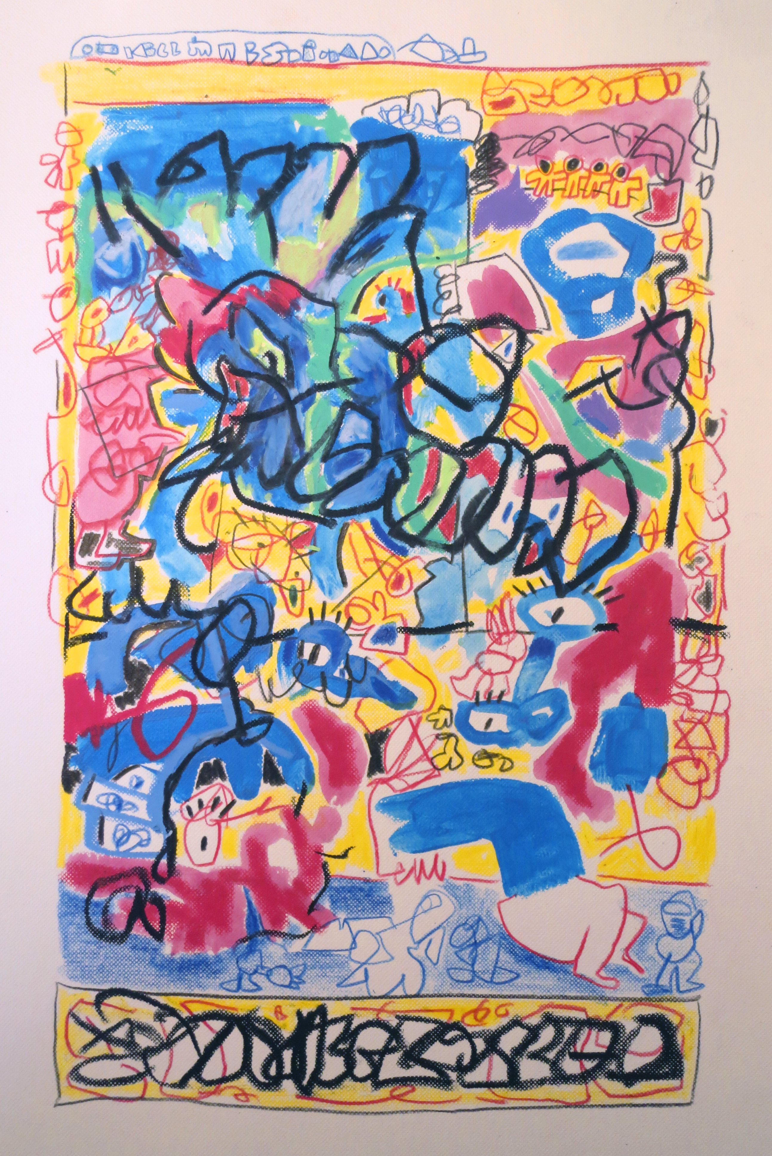 The first 8 are colour pencils and wax pastels on paper. The rest are markers or fineliners on paper.