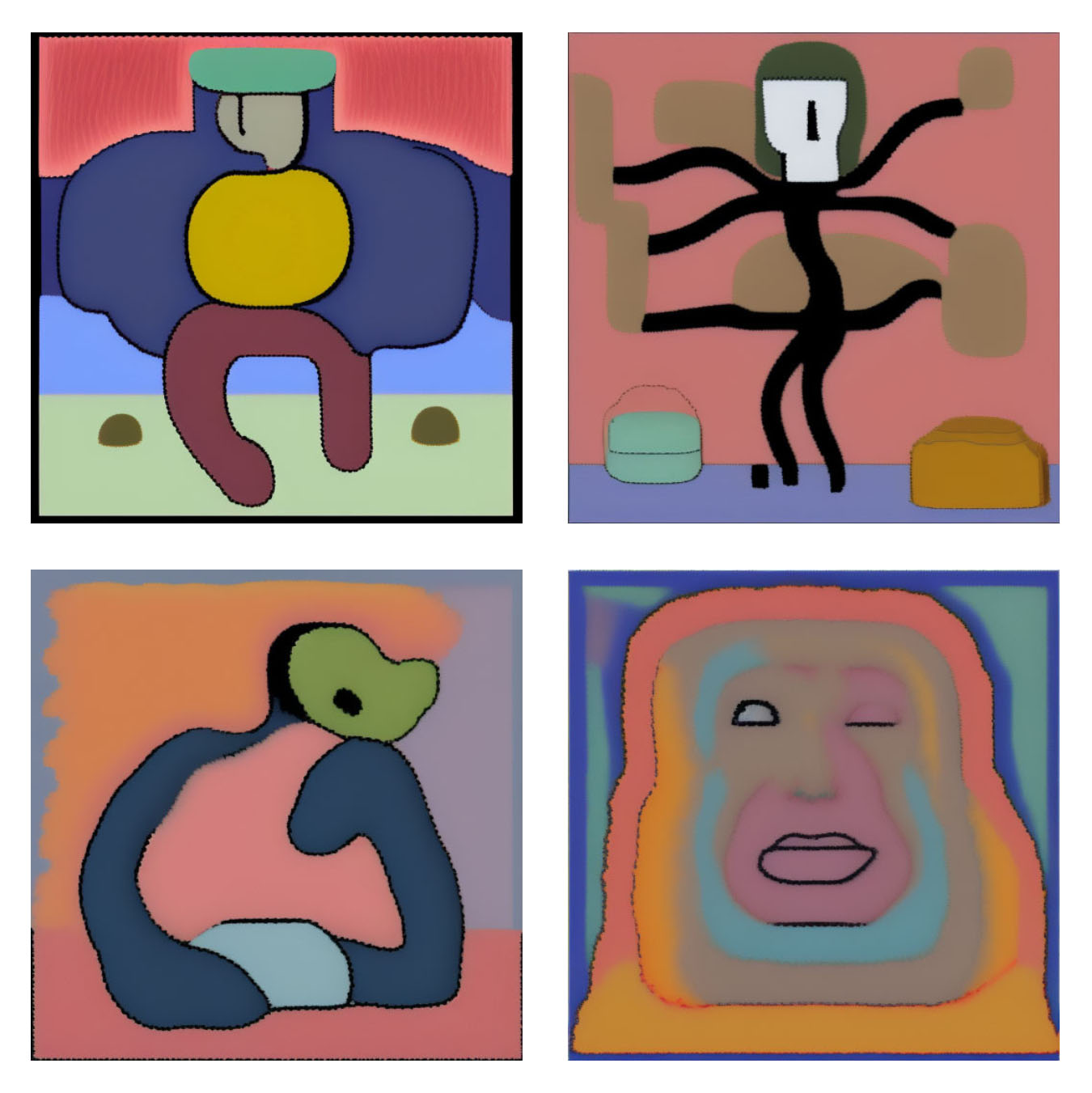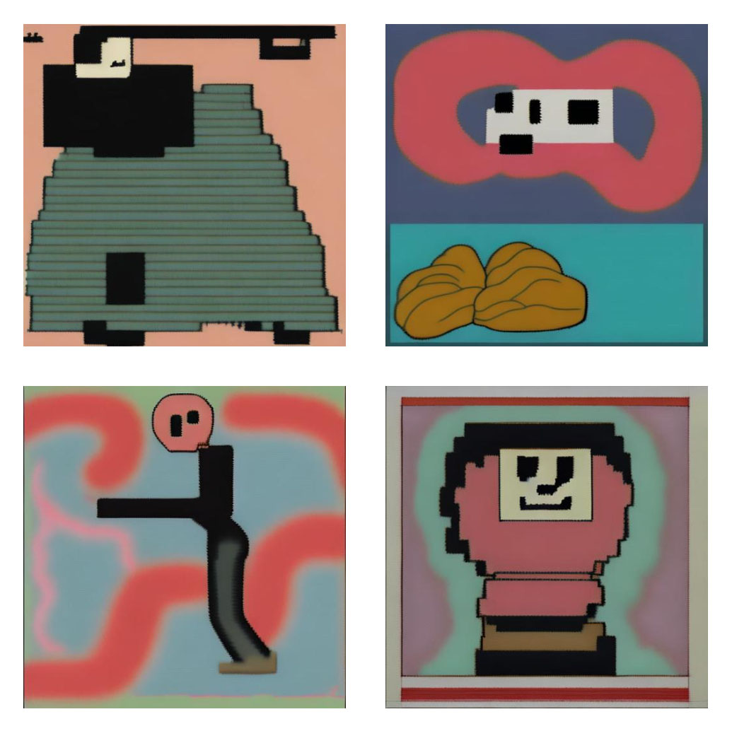 Towards the end of last year, I tried to train the model to copy the artistic styles of some of my drawings. I was surprised how easy it was to get it to more or less copy some essence of my style, but the results were more novel than genuinely interesting. I mean, I’m sure I could have improved my results with more experimentation, as these tools do require lots of trial and error. But as soon as I’d tried training the model on the generated images themselves, I saw that this was something far more interesting and started doing only that.